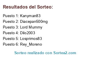 Lista de participantes: Dilo2003, Diacepan500mg, Losprimos83, Kanyman83, Lord Mummy, Rey_Moreno.