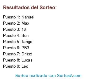 Lista de participantes: Drizzt, Nahuel, Lucas, 18, PB3, Ben, Max, Leo, Tango.