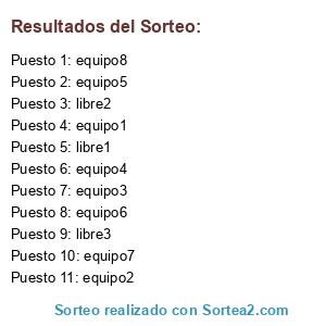 Lista de participantes: equipo1, equipo2, equipo3, equipo4, equipo5, equipo6, equipo7, equipo8, libre1, libre2, libre3.