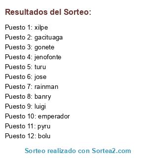 Lista de participantes: emperador, jose, rainman, pyru, bolu, gonete, turu, xilpe, luigi, banry, gacituaga, jenofonte.