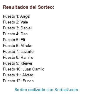 Resultados del sorteo: