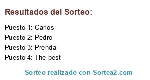 Lista de participantes: Carlos, Pedro, Prenda, The best.