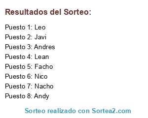 Lista de participantes: Andres, Andy, Facho, Javi, Lean, Leo, Nacho, Nico.