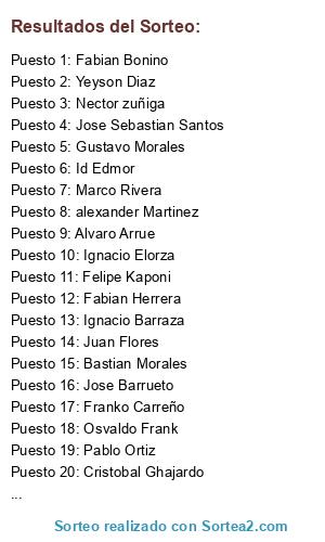 Lista de participantes: Fabian Bonino, Rodrigo Barrera, Fabian Herrera, Nector zuñiga, Xorogio, Osvaldo Frank, Hilarion Puelles, Gustavo Morales, Yeyson Diaz, Pablo Ortiz, Bastian Morales, Ruben Lopez, Negro Cortez, Diego Valdes, Fabian Aguirre, Jose Barrueto, Felipe Kaponi, Franko Carreño, Ignacio Barraza, Juan Flores, Rodrigo Robledo, Gonzalo Mora, Alvaro Arrue, alexander Martinez, Marco Rivera, MAtias Varas, Christian Araya, Jose Sebastian Santos, Cristobal Ghajardo, Michael Gonzales, Ignacio Elorza, Id Edmor.