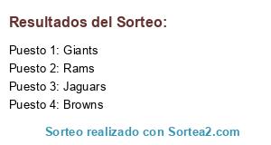 Lista de participantes: Giants, Rams, Browns, Jaguars.