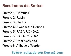 Lista de participantes: Real Sociedad, Hércules, Hertha, Rubin, Atlhetic o Werder, Swansea o Rennes, PASA RONDA1, PASA RONDA.