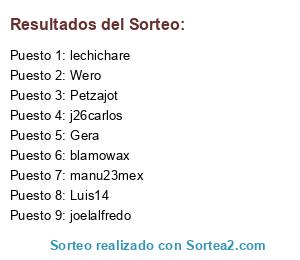Lista de participantes: j26carlos, Wero, Petzajot, Luis14, Gera, lechichare, blamowax, manu23mex, joelalfredo.