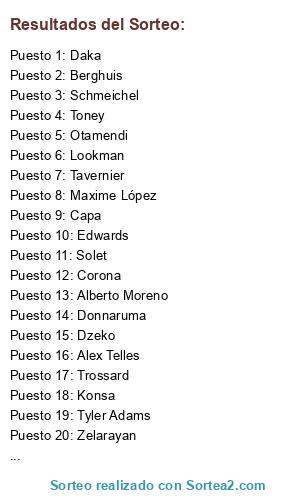 Lista de participantes: Donnaruma, Schmeichel, Alberto Moreno, Alex Telles, Otamendi, Konsa, Solet, Tavernier, Capa, Veretout, Tyler Adams, Maxime López, Trossard, Berghuis, Zelarayan, Lookman, Corona, Edwards, Dzeko, Watkins, Toney, Daka.