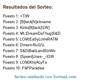 Lista de participantes: Dment-RuG/\L, LOM|KhyALyFa, {Speed}Jose-_-|GW, FM*Paradise, S&D|BadLandS|nWo, [B]lack[N]ickname, Kirito[B]lack{GW}, >T|W<|Mr.La,\G|uRM, LOM|EaSyLoVeRATM, Mt.|DreamDaThug|S&D.