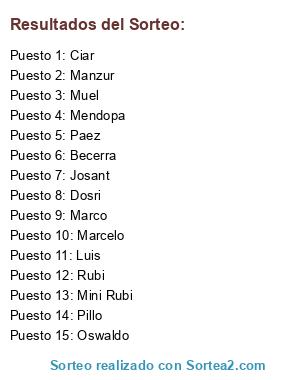 Resultados del sorteo: