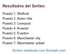Lista de participantes: Manchester city, Manchester united, Watford, Arsenal, Aston villa, Liverpool, Everton.
