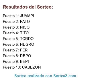 Lista de participantes: TITO, JUAMPI, CABEZON, FER, TORDO, BEPI, NEGRO, REPO, NICO, PATO.