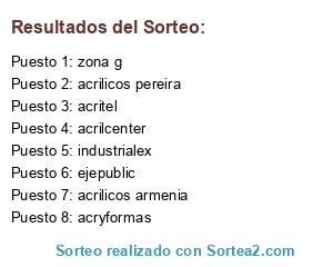 Lista de participantes: acryformas, ejepublic, acrilicos pereira, acrilicos armenia, acrilcenter, acritel, zona g, industrialex.