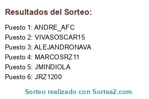 Lista de participantes: VIVASOSCAR15, MARCOSRZ11, JRZ1200, JMINDIOLA, ALEJANDRONAVA, ANDRE_AFC.