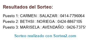 - Puesto 3: MARISELA AVENDAÑO 0426-7375153