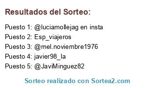 Lista de participantes: @2ataca2, No, @marivialmarcha, @vicensalm, @Santism25, Esp_viajeros, Hoyviajamos, angelrg_97, javier98_la, @inmac_br, @tintineando_, apolorg, jakekingsmith, @Manoli_Montarroso, @mundoneando, @anotherboardingpass, @syl_29, @iker.salgado, @mel.noviembre1976, @teri_zuki, @Avillalis en Twitter, davidyteri, @marcos_lool98, @Angel25mas, https://www.facebook.com/Kapitoste/, @joseaencinas, Sara dorado benitez, @magonzareno, @juntosencualquierlugar, cynthiar95, jrosky26, estefaniagm27, @alvsanars, Perea111, María Rosa Martín-Serrano, Sofieta_a, @Max_Power_Rebel, https://www.instagram.com/yoly.gut/, @javelrayo, https://twitter.com/SanyRubio, AnytaFernandez, AFpotrilla, Twitter @raquelcondem, https://www.facebook.com/raquel.condemartinez, @raquicm85, Adrianm_26, Masupe89, Nazaret Serrano, Maria Mcg, dortega667, bcalzas, alexgoma97, cocotp_, Instagram, Luisxupin, @monicabautistaf, @Dunesandra, @doctor.roedor, SilviaSerrano, @patriciarodrey, @fernandoalke, @DreamHunterArt, @fernando_alke, https://www.facebook.com/mariajesus.navasdiaz, radiodegiro, @Rosalia_JRZ, @Delantero23, @ivanmartinezderodrigo, @yolandaortizmarian, @Asanm88, @felixvk89, Wanderfooders, Risi_6, Zenklasrozas, zenkmostoles, Rocky&luna, Marta_gutierrez_martiny, @dip67317, @mary_tetis, @youwantherback, josejgp19, @luciamollejag en insta, https://twitter.com/AetheriaTravels, @MLCuadrado Twitter, Manoli Montarroso Facebook, @BaronVonBier, @JaviMinguez82.