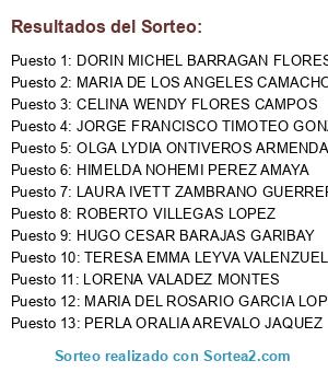 Resultados del sorteo: