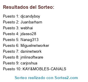- 2015-05-30 20:18:07 (GMT): Se modifica el sorteo (los participantes y ganadores permanecen intactos)