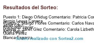 - Ganador: Diego Oñidug Comentario: Patricia Contreras Sergio Leyva Carrera Janet Glez