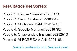 - Puesto 6: ALEGRE DAMIAN 30211061