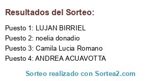 Lista de participantes: ANDREA ACUAVOTTA, andrea ballerini, Camila Lucia Romano, etelvina canevaro, Hector Hiralde, luis donadio, LUJAN BIRRIEL, Mariano M Tomatis, Miriam Hunicken, noelia donadio, Rocio Hiralde, Ruth Hiralde, sergio miranda, Tamara Gimenez, Vanesa Chino Bejar, Vanina Cancellieri.
