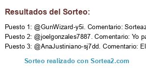 - Ganador 1: @GunWizard-y5i. Comentario: Sorteazoooo