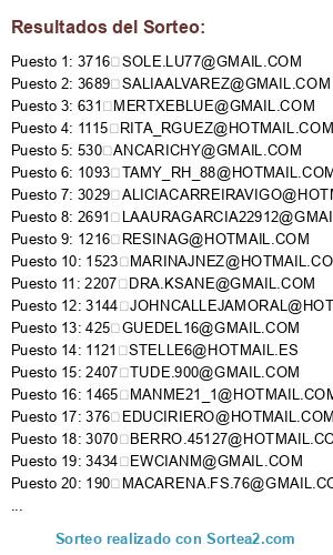 Este sorteo ha sido certificado por Sortea2. Sortea2 garantiza que: