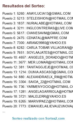 Este sorteo ha sido certificado por Sortea2. Sortea2 garantiza que: