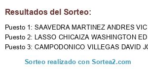 - Puesto 3: CAMPODONICO VILLEGAS DAVID JOEL