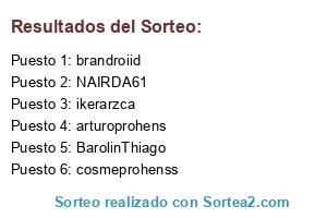 Lista de participantes: madega10, NAIRDA61, jamiji11, BarolinThiago, Prot8n, JoseZuevich, MasterE177, irvingCastanedq, terrebequis, CgTatico, HuberAl05750628, Franck41600262, ikerarzca, HarryHernndez20, brandroiid, cosmeprohenss, arturoprohens, Nima1224_, SantyYuge, mottasuarez_yt, EduardoGape3.