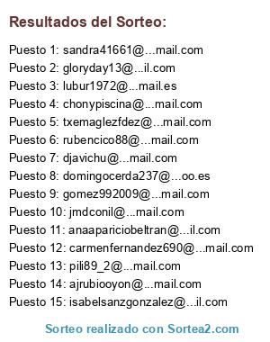 Lista de participantes: @mariendiezf, @marian.gari, @estefaniadm03, @champi49, @brasileira23, @guiradocerdafrancisco, @nickyh69, @maryrevil, @bealmar2002, @palomapm2011, @fervalleros, @carrili1, @n_xana, @pedropardosanchez15, @sole-molina-1983, @madridista.jg, @semeve_elcarton, @yolandabal, @verdepiojo, @gonclaro, @jorcas7348, @rafa_jb84, @rodrigo200585, @herrero.jorge, @marilonevado, @emanukova, @presig57, @vabru5, @pilidomi1, @jlm089, @alfredolopez25, @franciscojavier195717, @lubur1972, @chusjsa, @edu.paradinas, @lalycabasainz2, @malisa110, @aliramosja, @adv1000, @potifuentes, @jesustr42, @jguiradocano, @chonypiscina, @mj3belvis, @contrerasprado.maria, @pili89_2, @esterydani, @euge01, @miguel.almira, @doloressanchez56, @gloryday13, @jsanchval, @alsinapey, @paqui.mibarriomola.69, @farundo, @john_player_especial, @stela_ramirez, @j.lizarralde.gurrutxaga, @javipeluquita, @analeiro58, @domingocerda237, @tito_descolgaos, @silvia90lucena, @joseluisvargas16, @vicky_vlc83, @quiromasajista.juancarlos, @gomez992009, @ricardo_gfdz, @agronovaserveis, @felix_puchi, @djavichu, @lauramione, @anna.calella, @lauraalonso8140, @carmenperezgonzalez, @rociosanchezcampon, @jerosan75, @pamblanco71, @autoserviciojaime, @vb.charo, @jcdelossantos, @jualju_cm, @anaapariciobeltran, @pakkilofer, @fjpicapiedra, @gracamaranhoto, @luiscantiu, @marcdel25, @mecanicamazda, @zipiyzape73, @villardeo.papi, @sildw2010, @saramartin_bcn, @ramon_el_1, @sonialboran1983, @ajrubiooyon, @divinamontesfernandez, @jmdconil, @josoainara, @cris_maquedano, @nuria.sjm, @rubencico88, @aerdna_677, @mariajoseindaleciogalindo, @cuarterofernandez, @angelines.u, @ittashi, @dianags_90, @miguelcelta, @jasopu, @juangg71, @kekambas80, @kanikamaru, @monizulu2010, @a.mf66, @jm.morell.lopez, @anais1930, @jefevilaso, @david_feri, @veralexaba, @anyelina_saletta34, @carmenfernandez690, @sandra41661, @jesus_fc, @elfernanmitsueclipse, @hugo.barahona.blanco, @anabeldm1977, @jukaraperez, @lourdespellonrodriguez, @mamenbeni5, @nita4004, @laflory, @rosaferdani, @matiass1007, @isabelsanzgonzalez, @Anavillamuera, @anacfs2, @parasiempre15, @tamy_tmr, @alberto111728, @rober_mg_1986, @josecersan, @kratos482009, @fabiyhola, @txemaglezfdez, @jdelamodelaiglesia, @gatitarubia667, @sandraferre2002, @rafa.checa, @charoher, @tornado-managements, @ygutierrezg, @carminayven, @mitx__72.
