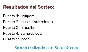 Lista de participantes: carmelocolacios, turni92, oskar84edu, dabid_6, rogerbikerun, jitocr, brunimaister, ugupere, dani93castro, noesdecobardes, edgarmm83, torronterass, guaje_21, fran_84mc, raquelfaucon, davidserranito, delaurii, cuckylayka, aleixbosa, christian_gb2, marcb_official, chrodriguez_, rodrigomaneiro, hugosuarezv, pelayadassolidarias, clubciclistaroderos, enricrp5, rauxi11, e.maillo, javierfdezlopez_, samuel.toval, ignasimiralles, rogernavarro7, chuckyflores, oneandshothunting, trilaieta, runnerpopular, nachocampos75, alexvander, jorgedelarosa_, marccry14, emaillo.