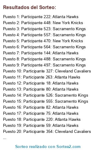 - Puesto 1: Participante 222: Atlanta Hawks