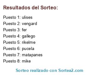 Lista de participantes: rikelme, pucela, mike, gallego, matapanes, vengard, ulises, fer.