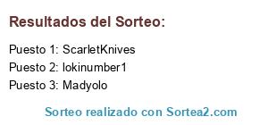 Lista de participantes: ScarletKnives, José Maria, CarlosY2J, lokinumber1, Angerl, xeskofdez, Irial, Randomnick95, shadowdark, Itachi22, Madyolo, Dark_Kenshin.