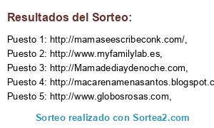 Lista de participantes: http://mamaseescribeconk.com/, , http://www.globosrosas.com, , http://macarenamenasantos.blogspot.com, , http://www.myfamilylab.es, , https://yyoconestasbarbas.wordpress.com/, , http://bebeamordor.com, http://Mamadediaydenoche.com, , http://www.creandounafamilia.net, , http://madresestresadas.com, , http://www.centimetronews.com, , http://www.caracolmiricol.com, , http://desvariosdeunamadre.com, , http://perdidaensebastopol.blogspot.com.es, , http://www.koamama.com., .
