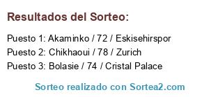 Lista de participantes: Chikhaoui / 78 / Zurich, Bolasie / 74 / Cristal Palace, Akaminko / 72 / Eskisehirspor.