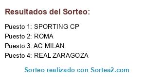 Lista de participantes: AC MILAN, ROMA, REAL ZARAGOZA, SPORTING CP.