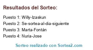 Lista de participantes: Marta-Fontán, Nuria-Jose, Willy-Izaskun, Se-sortea-al-dia-siguiente.