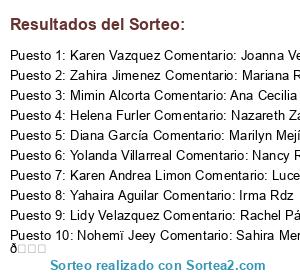- Ganador 1: Karen Vazquez Comentario: Joanna Veliz