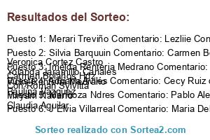- Ganador: Merari Treviño Comentario: Lezliie Contreras Verònica Aveldaño Myrna De Coronado Laurita Garza Magda K. DePe