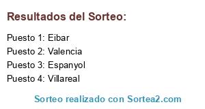 Lista de participantes: Valencia, Espanyol, Eibar, Villareal.