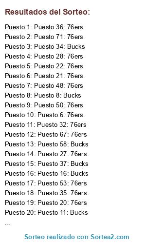 - Puesto 1: Puesto 36: 76ers