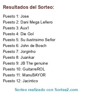 Lista de participantes: Jacintico, Su ilustrisimo Señor, Jose, JB The genuine, ManuBAYOR, John de Bosch, GuitarreROL, Jorginho, Juankar, Dani Mega Leñero, Die Gol, Aux1.