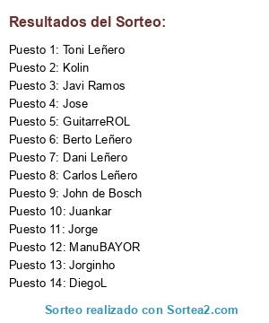 Lista de participantes: John de Bosch, ManuBAYOR, Carlos Leñero, Javi Ramos, Dani Leñero, GuitarreROL, Juankar, Jorginho, Jorge, DiegoL, Berto Leñero, Jose, Toni Leñero, Kolin.