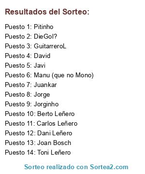 Lista de participantes: Juankar, Javi, Joan Bosch, Manu (que no Mono), GuitarreroL, Jorge, Dani Leñero, Jorginho, DieGol?, Berto Leñero, Toni Leñero, Carlos Leñero, Pitinho, David.