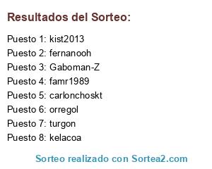 Lista de participantes: kist2013, Gaboman-Z, orregol, famr1989, fernanooh, kelacoa, turgon, carlonchoskt.