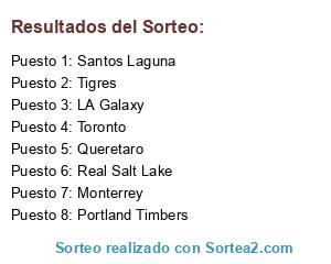 Lista de participantes: Queretaro, Santos Laguna, LA Galaxy, Real Salt Lake, Monterrey, Tigres, Toronto, Portland Timbers.