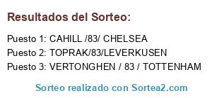Lista de participantes: TOPRAK/83/LEVERKUSEN, CAHILL /83/ CHELSEA, VERTONGHEN / 83 / TOTTENHAM.