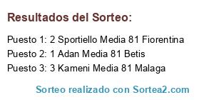 Lista de participantes: 1 Adan Media 81 Betis, 2 Sportiello Media 81 Fiorentina, 3 Kameni Media 81 Malaga.